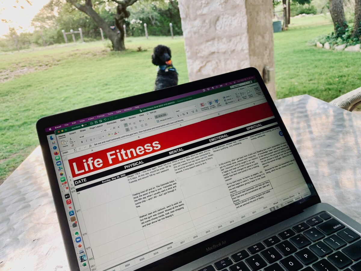 As you can see, it’s arranged in four vertical columns: Physical, Mental, Emotional, and Spiritual, with a black row recording the date and separating each day. At the bottom, you see tabs: there’s a tab for each year, going back to 2010 when I started. If I want to, I can search for every Memorial Day since then. That ability to look back helps me track my journey, how far I’ve come, what I’ve been able to build, what I’ve been able to leave behind.